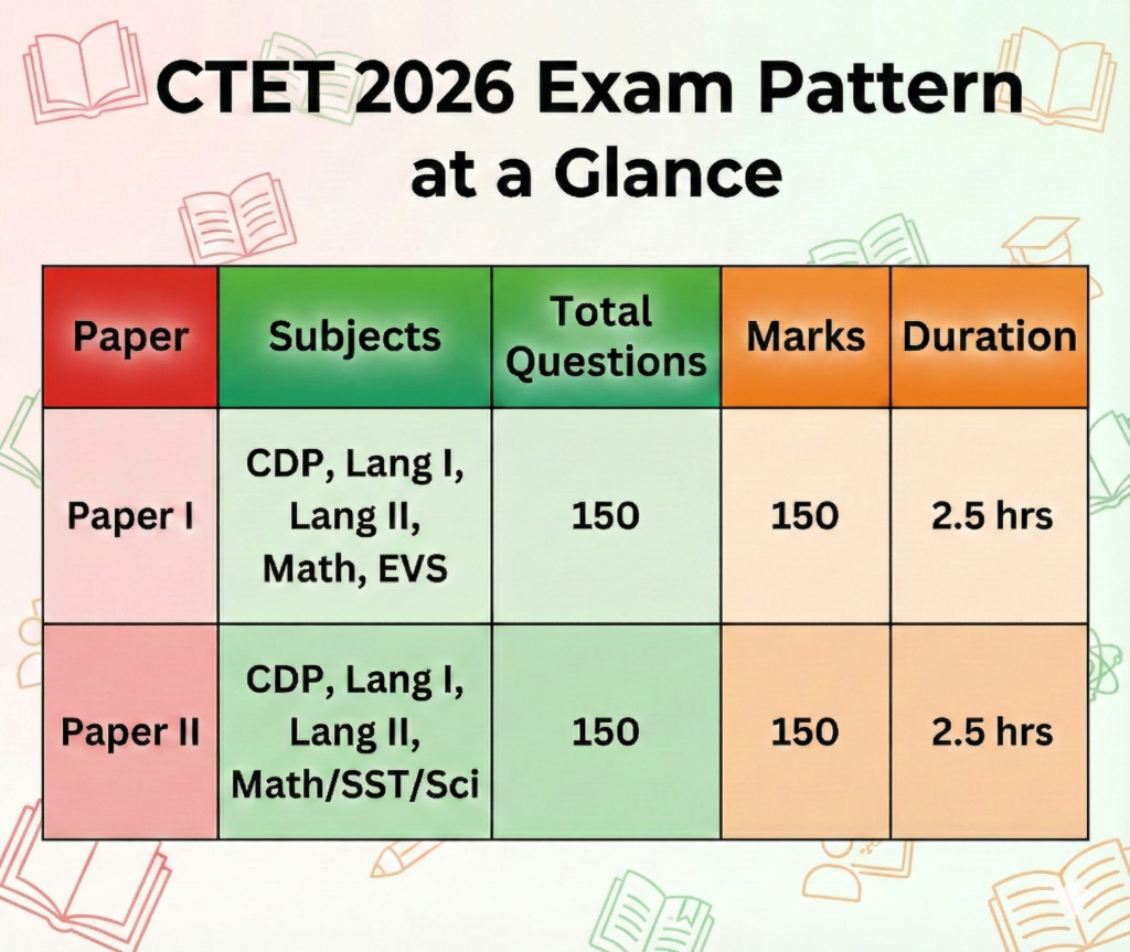 Candidates aiming to teach Classes I–VIII must appear for both papers. The B.Ed candidates can appear in Paper-II only however, those who have done D.El.Ed can appear in both the papers.
