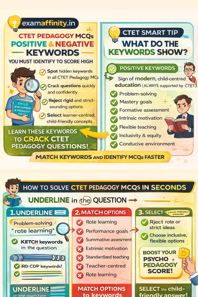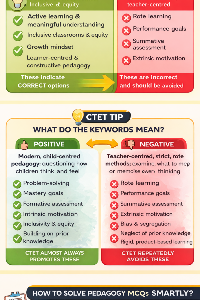 One of the smartest ways to solve CTET Child Development and Pedagogy (CDP) MCQs is by identifying positive and negative keywords hidden inside the question and options.